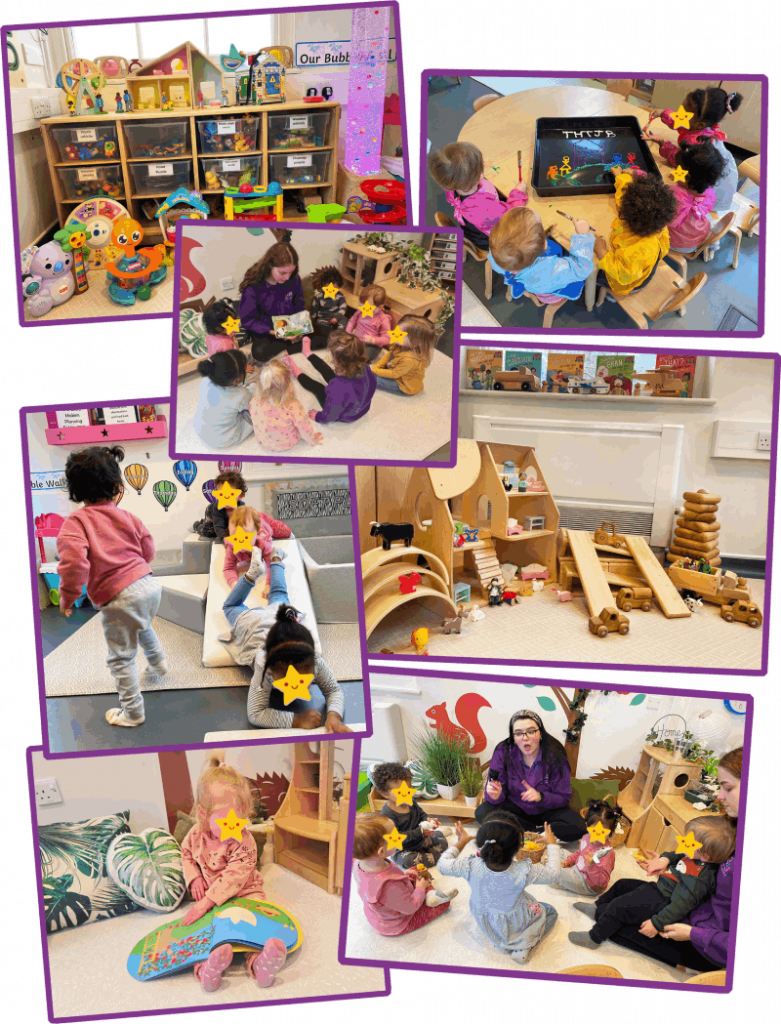 There is also an area designed to stimulate the senses for the smaller babies, to help develop their all-round development in a fun, safe, and stimulating way. The sensory area has lots of different resources for the babies to look at and work out what the objects do/ can be used for.